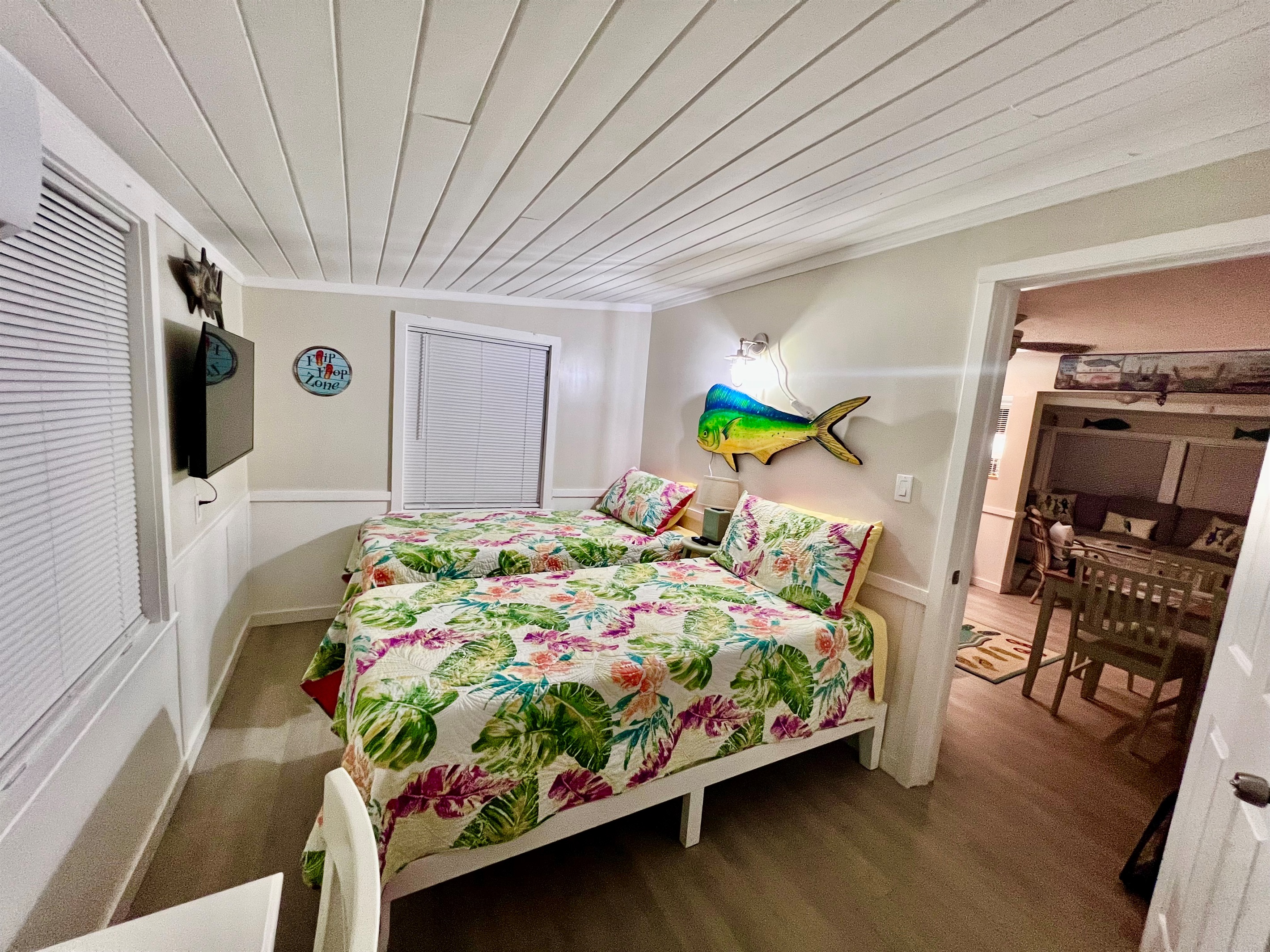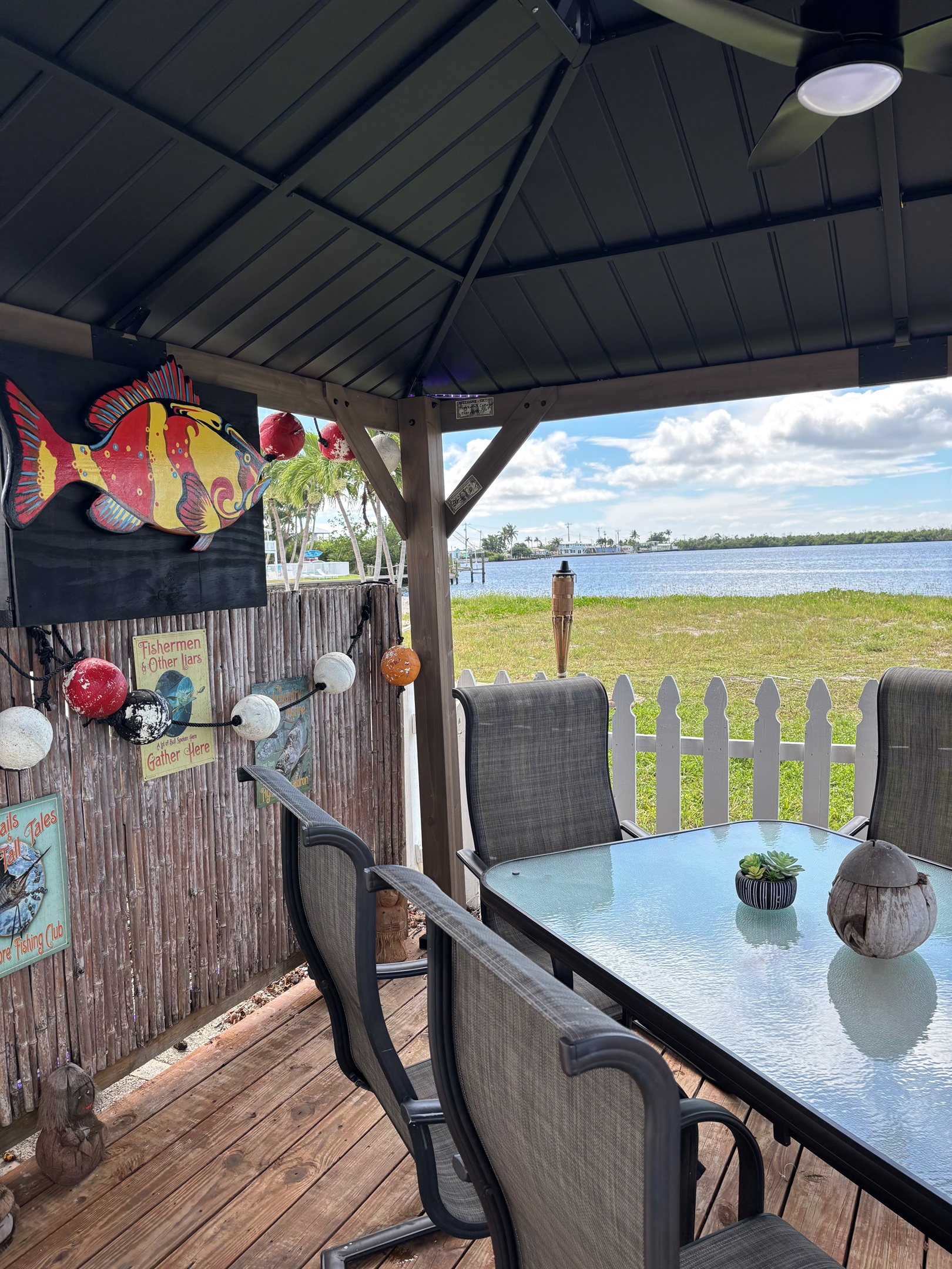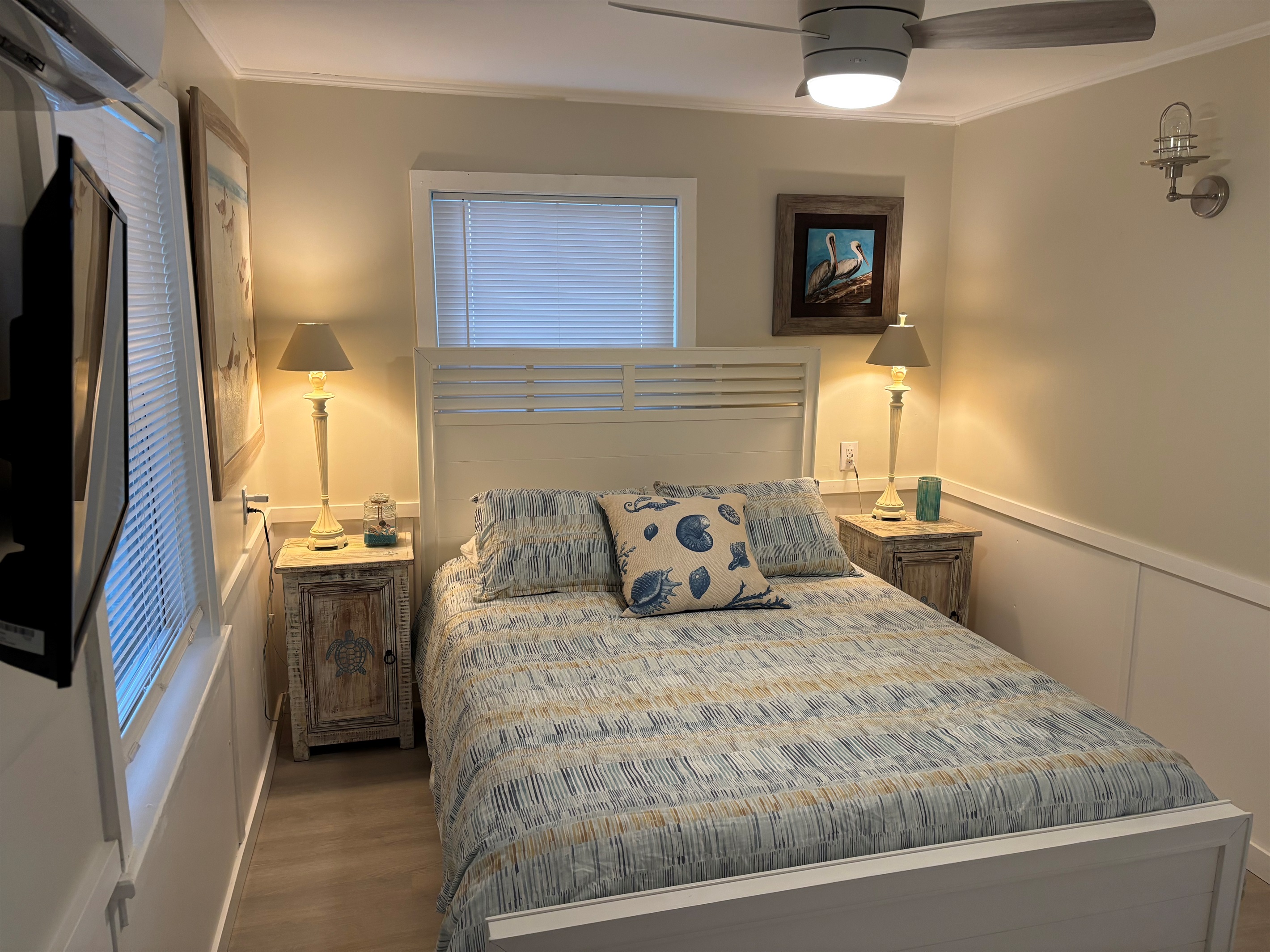 After a day of shopping and/or fishing, relax by the fire pit while watching the mullet jump and dolphins play. When you're ready for some sleep, crawl into the brand new beds that come with dream mattresses. One bedroom has either a King bed or two Twin XL beds, depending on your needs. The other bedroom has a queen bed. Both bedrooms have smart televisions waiting for you to watch your favorite streaming channels.