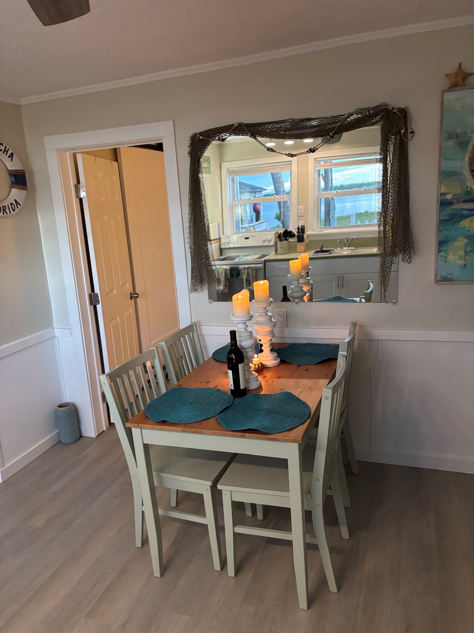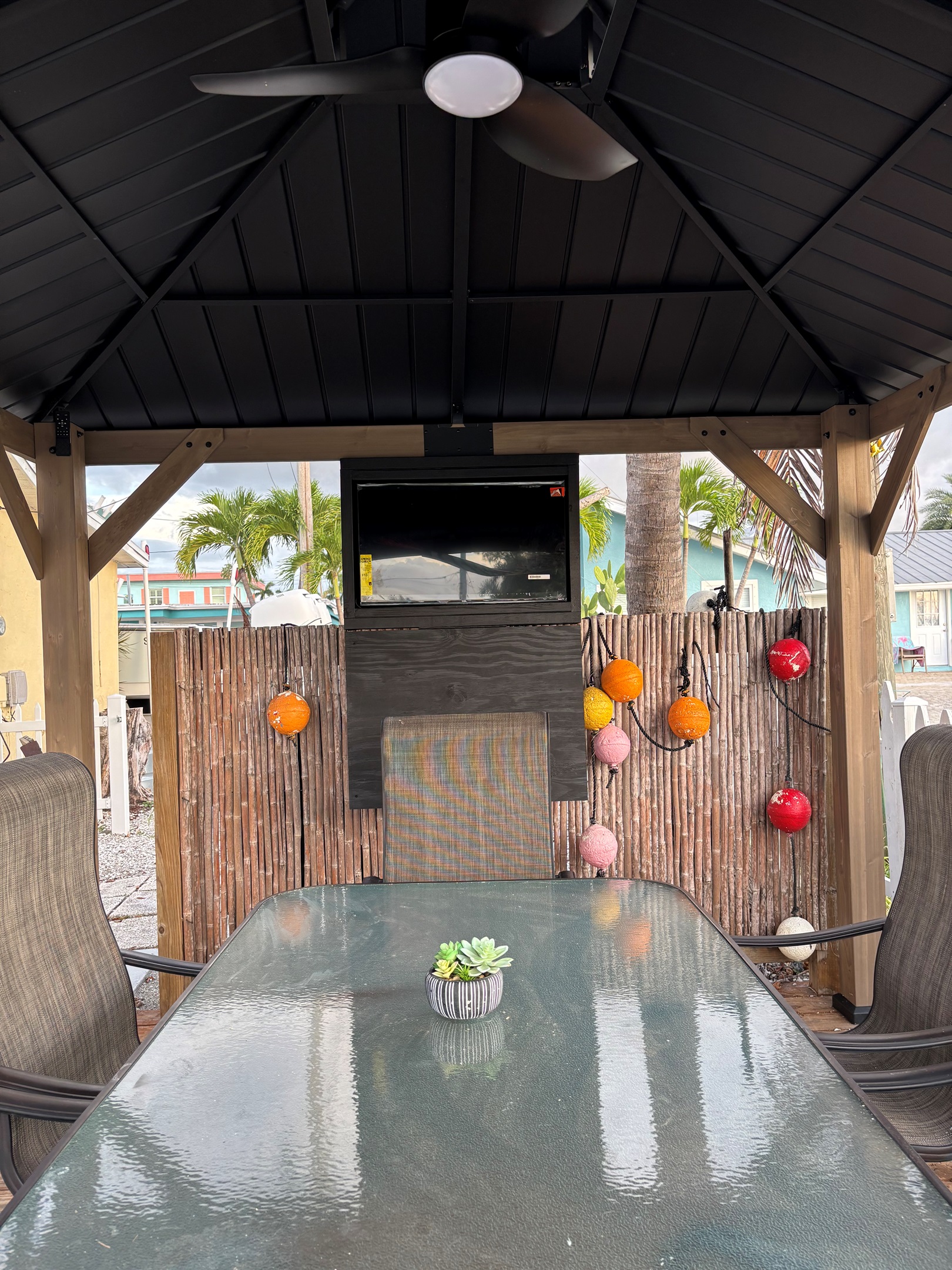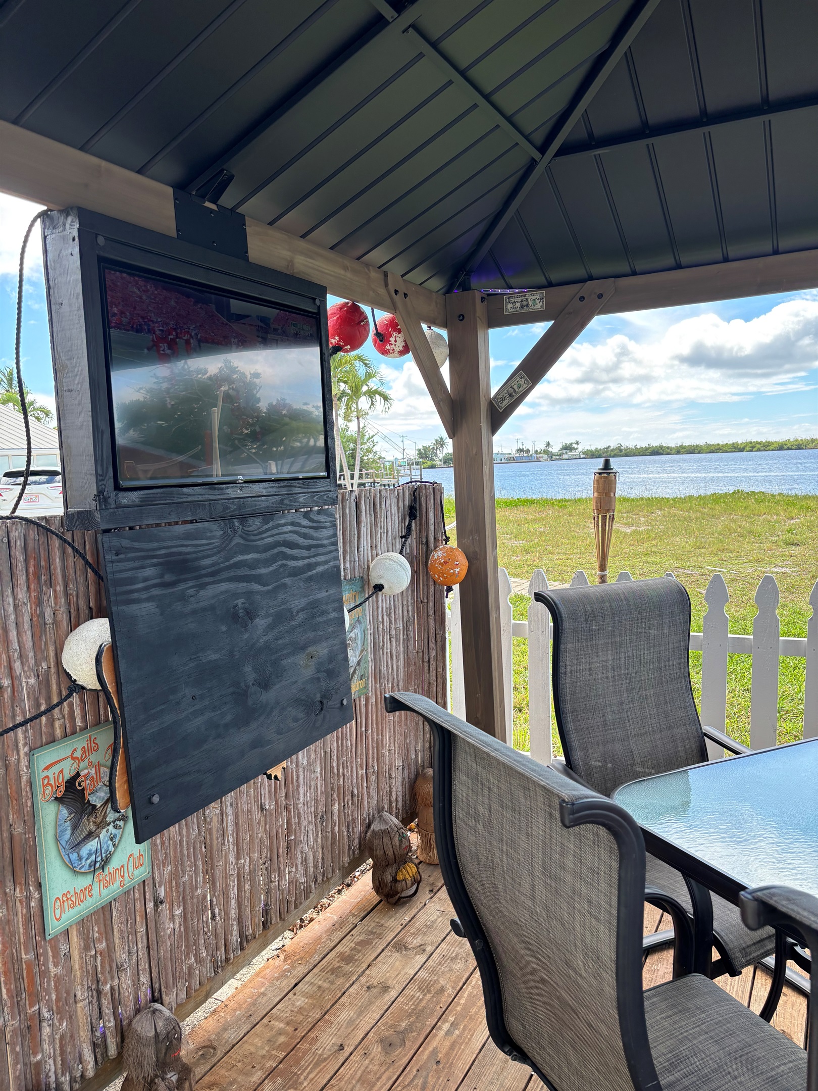 After a day of shopping and/or fishing, relax by the fire pit while watching the mullet jump and dolphins play. When you're ready for some sleep, crawl into the brand new beds that come with dream mattresses. One bedroom has either a King bed or two Twin XL beds, depending on your needs. The other bedroom has a queen bed. Both bedrooms have smart televisions waiting for you to watch your favorite streaming channels.