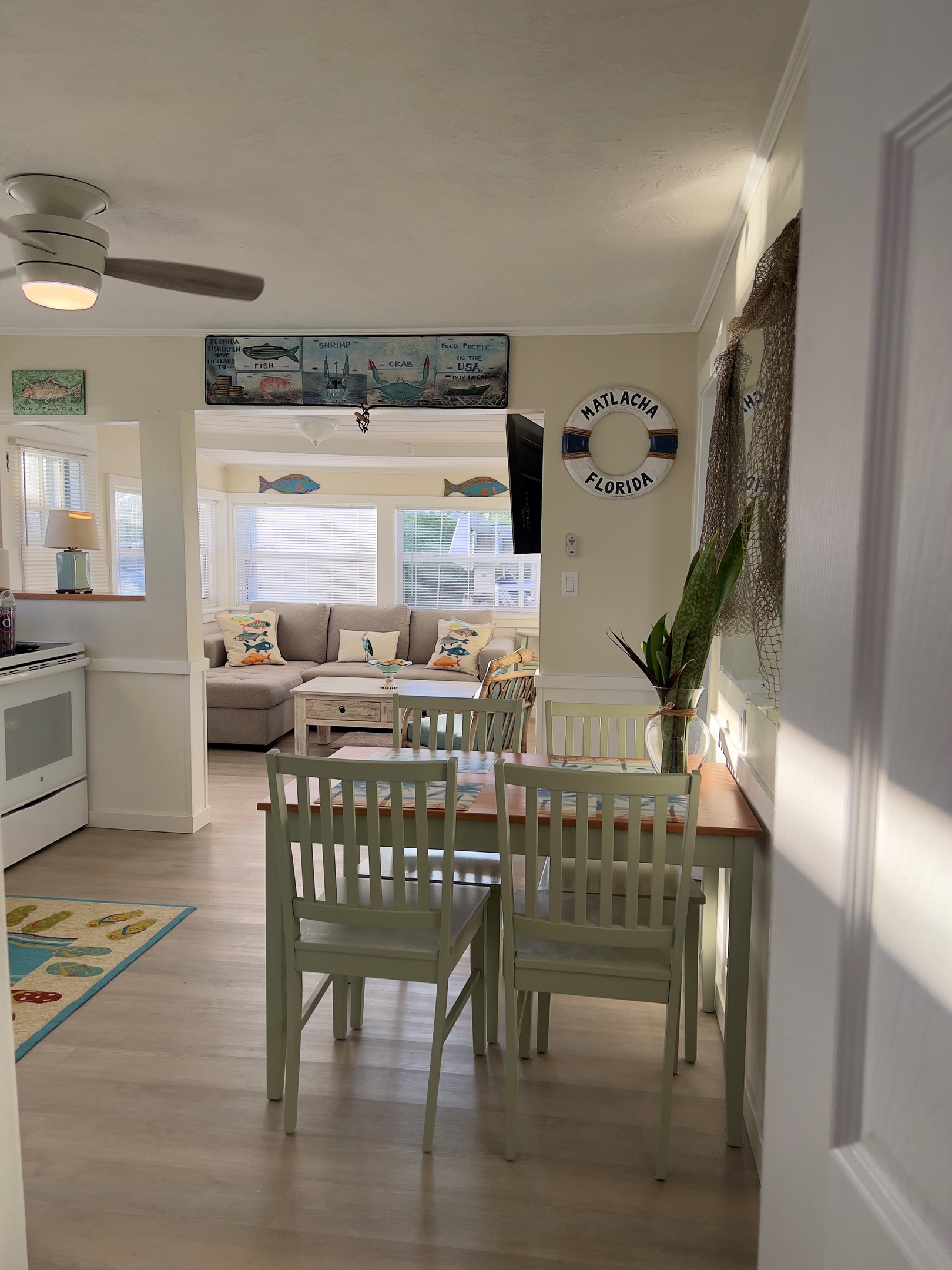 Old Florida at it's finest! You can walk to any of the island's art galleries, gift shops, restaurants, and bars within 5 minutes or so. A couple blocks away you will find a beautiful waterfront park with large playground and boat ramp, as well as the "Fishiest Bridge in the World" for more world class fishing. If you'd like to take a dip in a beautiful pool, the community pool is just a few minutes drive.